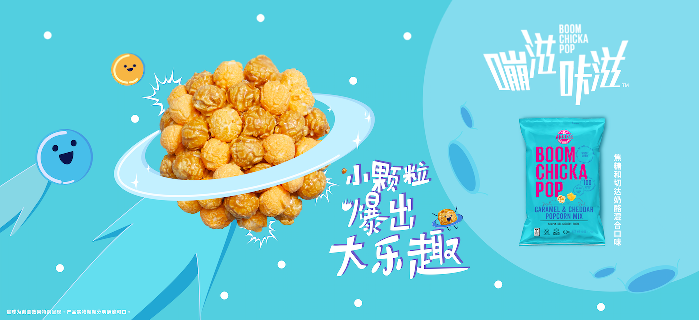 此外,嘣滋咔滋还在中国推出了白切达奶酪以及焦糖和切达奶酪混合口味,将地道美式爆米花风味尽数囊括。白切达奶酪口味使用纯正切达奶酪代替奶酪调味剂,让消费者轻松享受健康无负罪感的美味。焦糖和切达奶酪混合口味,在切达奶酪的基础之上更添焦糖的浓郁甜蜜,创造出难以拒绝的满足滋味。